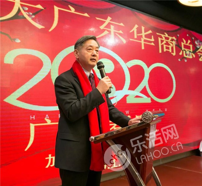 中领馆商务参赞俞善君代表中领馆向大家致以新年的问侯,并表示,2020年迎来广东省与BC省结好25周年、广州市与温哥华市结好35周年、中加建交50周年,25/35/50是中加双边幸运数字,期待两国关系在2020年重回正轨,为双边经贸合作恢复增长势头及进一步发展创造良好环境。也希望加拿大广东华商总会及各界人士继续为推进双边关系发展作出贡献。