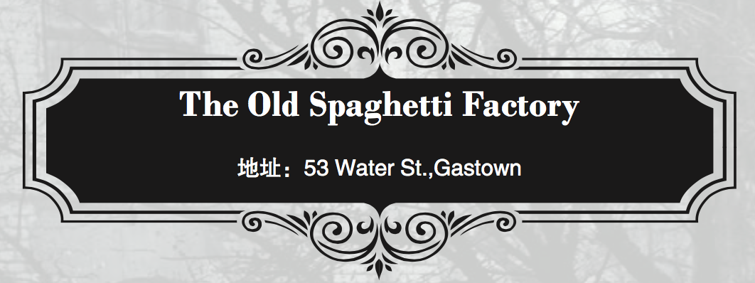 在煤气镇(Gastown)一条叫做Water Street 的街上坐落着温哥华著名的The Old Spaghetti Factory(老意大利面工厂餐厅) 。这家怀旧气韵的餐厅中央放置着一节上个世纪五十年代的有轨汽车,其实与一个悲惨的故事有关。