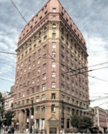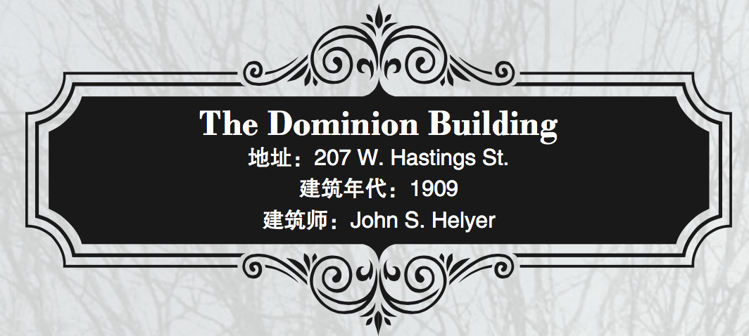 有13层之高的The Dominion Building在二十世纪初第一个十年尾落成时,创下两项加国记录:加拿大最高的摩天办公大楼和温哥华首座钢结构大厦。