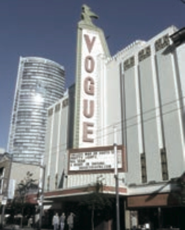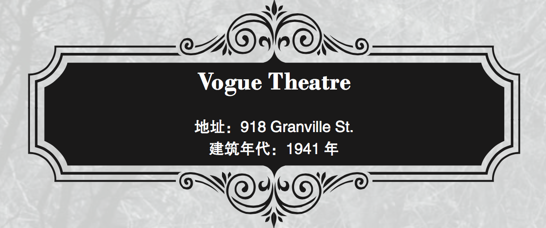Art Deco建筑风格的Vogue Theatre,在温哥华人文化精神生活里扮演着重要的角色。剧院上一块巨大的霓虹灯招牌,与在同一街的其它剧院的招牌一并缔造了北美不夜城的美名(The neon capital of North America)。