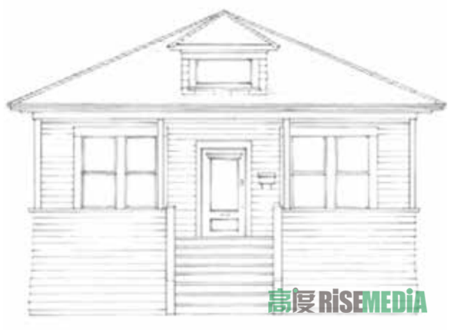 此类型的独立屋样式有多种。其一是我们通常所说的Bungalow,正面的客厅一般开有很大的窗户,采光效果非常好。主体的外墙为白色灰泥,而地下室部分则为木板墙,刷成了粉红色,极易辨认,这类独立屋还有个好听的名字——草莓盒子屋(the strawberry box)。