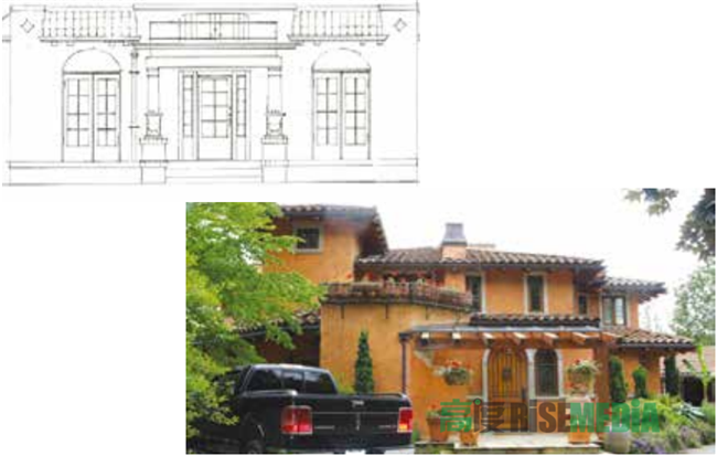此类独立屋一般建有与房屋统一风格的院墙,房屋外观装饰虽不多,但仍别具风格,墙体厚重结实,小陡坡屋顶,法式大门,红瓦顶,白灰墙,厚木窗棱,以及大量铁艺的艺术应用,均蕴含了西班牙建筑的魅力。