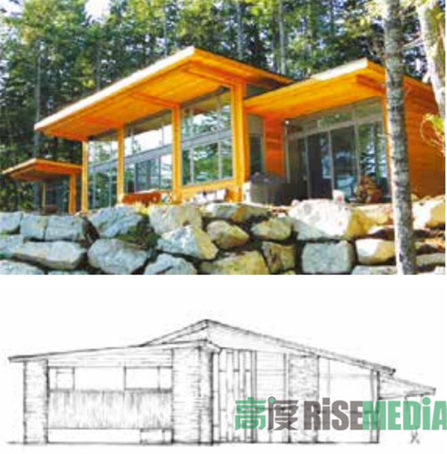 加拿大西海岸现代建筑(简称西岸现代建筑)闻名遐迩,虽是典型的区域性产物,却也不妨借鉴其他类型的建筑形式,如美国建筑大师赖特(Frank Lloyd Wright)的“有机建筑”。