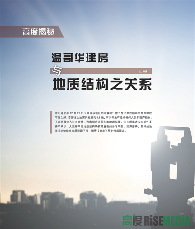 还记得去年12月29日大温哥华地区的地震吗?整个房子都在摇动的感觉实在不怎么好,幸好这次地震只有里氏4.8级,所以并没有造成任何人员和财产损失。不过地震使人心有余悸,考虑到大温哥华的地理位置,住在哪里才安心呢?不得不承认,大温哥华的地质结构确实是重要的参考项目,建房修房,怎样的地基才能使整座房屋坚固不催,请看《高度》周刊特别报道。