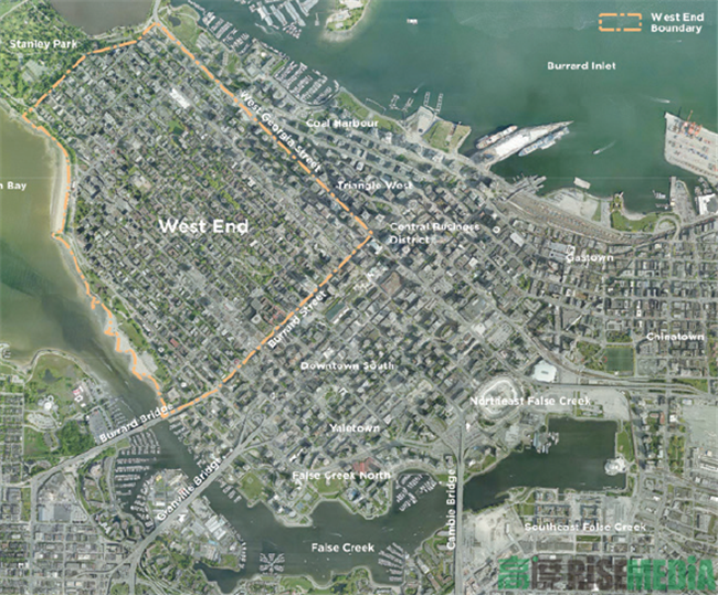 西端区西临史丹利公园,东接Burrard St.,北靠 West Georgia St.,南至 Pacific Ave.,了解温哥华的人都知道,它三面环绕着海滩和水,绿色边缘从东面一直延续到西北面史丹利公园茂盛的森林,环境十分优美,与温哥华的核心金融与办公楼区近在咫尺,工作生活都十分便利,是温哥华最具活力、居住人口最密集的社区。