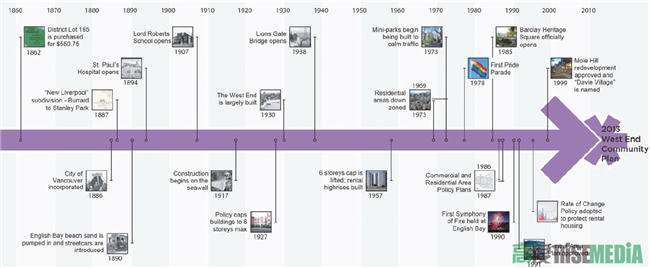 近年来由于温哥华房价居高不下,特别是大温地区独立屋90%以上地区均价已经突破百万,当局只好以提高住宅建设密度以解决房屋供给不足的问题。于2013年通过的《温市西端社区计划》(West End Community Plan),内容涉及土地使用、住房、交通、公园、公共场所、文化和遗产等方面的内容,这片处于温市中心社区的大改造随之启动,虽然计划规定,新建筑必须有25%比例的单位用于社会福利房,并且对建筑物高度做出限制,但是在接下来的几年间,大量土地将以高价转售,一批昂贵的高层公寓主要沿着Georgia走廊和Burrard走廊拔地而起,整片区域迈向高端化已经难以逆转。