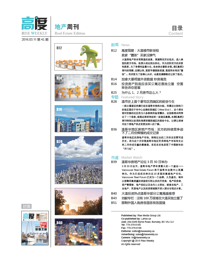 目前西端区的租屋空置率是温哥华市最低的社区之一,低至0.3%,不少发展商也瞄准这块大饼,大兴土木。最近获得市府审批的项目,其中一个是位于比德韦尔街(Bidwell St.)1188号,将兴建一幢22层出租公寓,提供108个单位,而位于彭德雷尔街(Pendrell St.)1754至1772号的出租公寓项目,落成后将提供178个出租单位,该项目在去年9月获市府审批后一度遭到居民反对并入禀法院,最后以居民败诉告终,工程继续进行。