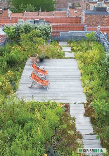 比利时天台花园就好像野生于高楼之上。木台缝隙中还有苔藓丛生。小树挺立,小野花遍布。摆两个太阳椅在木台上,闭目养神,脑海中就能出现一片碧绿湖景、蛙声片片的原始景象。