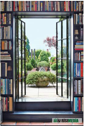 从书房望出天台花园,禅式的设计让都市用户更加心神宁静。这个天台花园设计比较保守。多用花盆种植高低不一的绿色植物,加上装饰一些小型佛像和现代雕塑。地板依旧保留。漫步其中就好像欣赏一个花园艺术品。