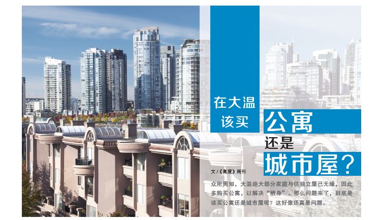 众所周知,大温绝大部分家庭与住独立屋已无缘,因此多购买公寓,以解决“栖身”。那么问题来了,到底是该买公寓还是城市屋呢?这还像还真是问题