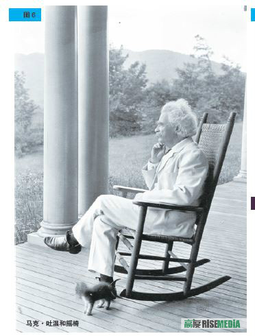 历史上钟爱摇椅的名人很多,比起那些中规中矩的家具,摇椅自然成为最具趣味、最能与人亲近的伙伴。抽象派大师毕加索的工作室和家中,都能找到他中意的曲木摇椅。20世纪50年代,媒体发布了肯尼迪总统在办公室坐在摇椅上的照片,名人效应瞬间爆棚,一下子捧红了当时的P&P摇椅制造公司。那个年代的作家马克·吐温,很喜欢坐在室外的摇椅上抽烟,那样子好像在说“我只想安静的做个美男子”。(图6,图9)