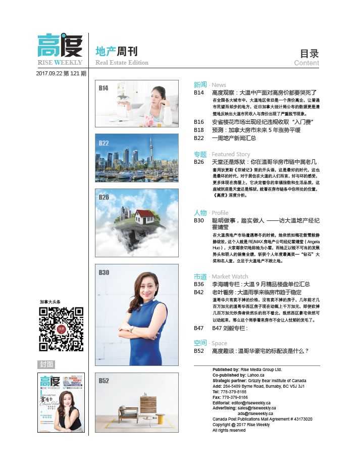 大温地区有得天独厚的人文和地理条件,是移民的首选之地,只要政府不刻意干预,房地产的刚性需求就仍然会存在。因此她对大温的房地产市场前景充满信心。