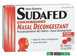 Pseudoephedrine (Sudafed) ,适用于过敏或上呼吸道引发的鼻塞咳嗽的镇咳祛痰药。药品常见的副作用是导致肾上腺升高,导致心律过快、高血压、心悸等症状。