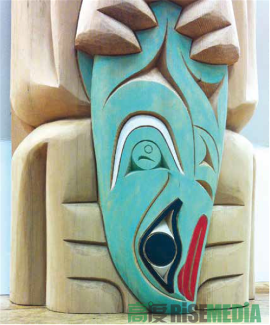在所有的动物中,又以熊鱼搭配或者雄鹰展翅为最多,同时这样的作品也是旅游观光者的首选。因为熊代表勇气和力量,在原住民的眼里,这样的熊被称为“成年男士”的象征,多有夸赞之意。而三文鱼是沿岸原住民最主要的粮食,有三文鱼的地方就意味着丰收和富足,然后温饱思淫欲,进一步促进沿岸各种精神文明的高速发展。所谓的熊鱼搭配作品指的多是一头健硕的熊以站立的方式,一手抓住鱼或者卧立着嘴中衔着鱼。这样的造型都是来生活中真实场景的还原,像先前写到的那样,三文鱼在回流过程中需要经历阶梯式的跳跃,而跳跃中会被正在捕猎的熊发现,一把捉住,变为腹中餐。原住民们无数次看到这样的场景,便把它记录在自己的艺术中。