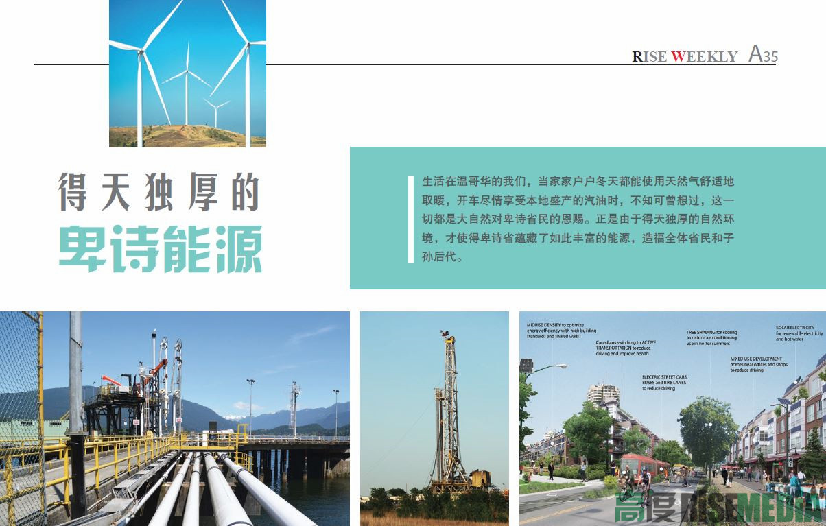 除了石油天然气等传统能源项目外,作为国际知名的绿色省份,卑诗省格外重视环保,还有许多新能源亟待发掘,可以预计的是,随着日后人们对生活要求的提高和环保意识的增强,新能源必将成为卑诗能源业发展的顶梁柱。