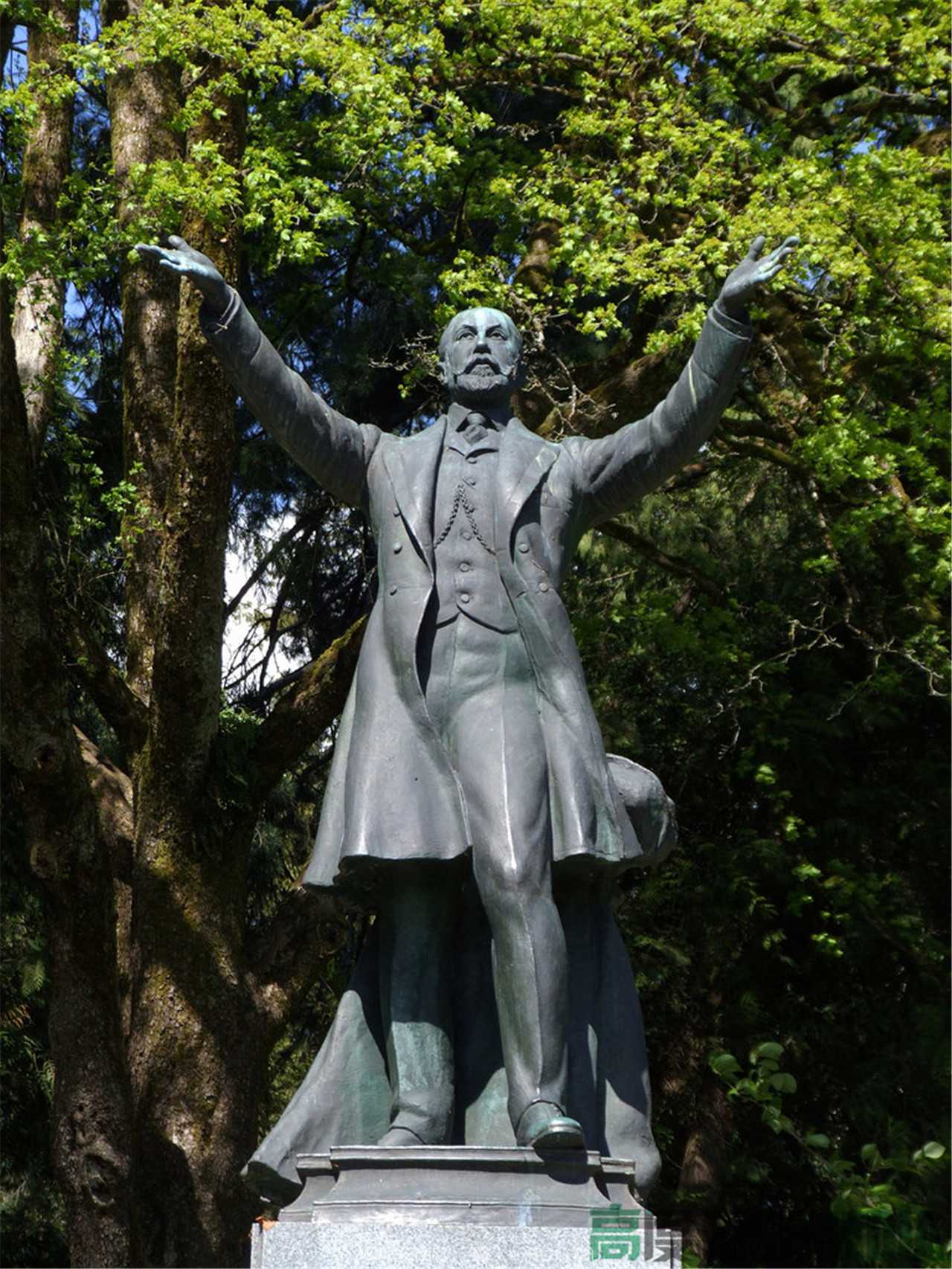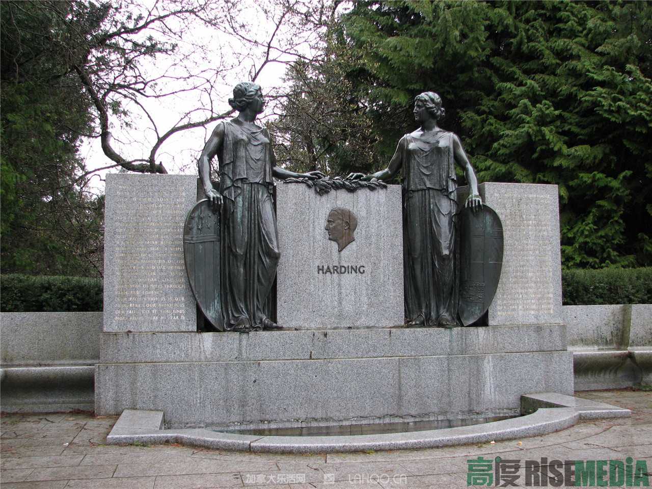 还是斯坦利公园,所以这个公园得重点清理。就在斯坦利公园Pavilion 夹 Malkin Bowl之间, 竟然有美国总统哈定 (Warren G Harding,1865——1923) 的纪念雕塑。不就是哈定曾经访问过这里嘛,有什么可纪念的,要知道哈定可是美帝代表人物,而且来自腐朽的共和党,我们不仅要彻底埋葬封建主义,更要打倒帝国主义。