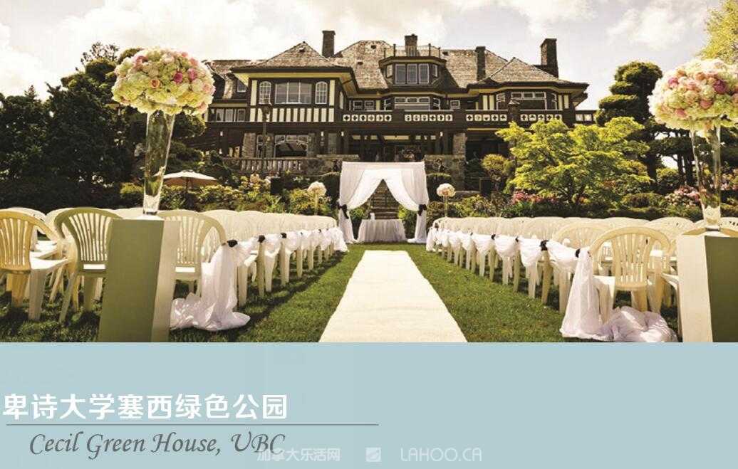 卑诗大学塞西绿色公园是大温乃至全卑诗最著名的婚礼场地之一,外表华丽的房子建于1912年,搭配专业婚礼仪式与宾客接待。另外这里景观效果极好,从乔治亚海峡到豪湾山全景可谓是一览无疑,给予新人宁静和浪漫的难忘感觉。
