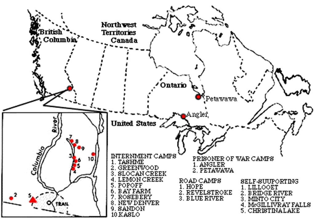 加拿大集中营分布图。