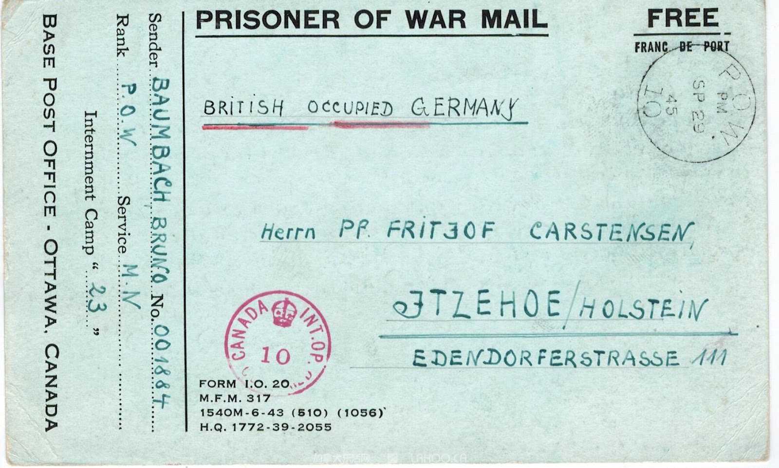 图为流通于集中营的专供战俘与家人通信的明信片。