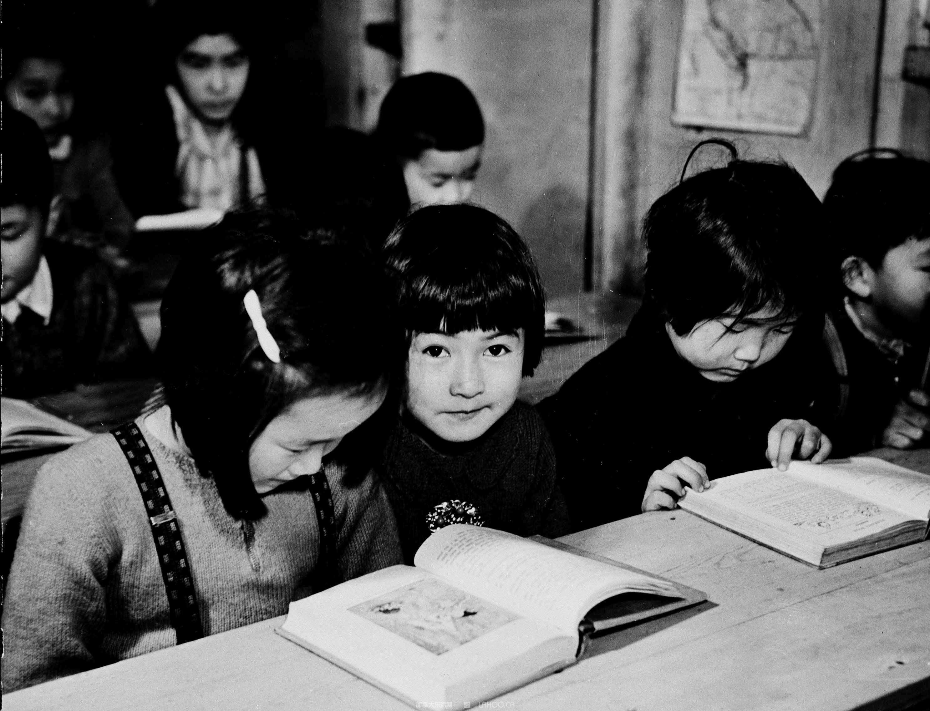 二战期间被投入集中营的日裔女童在读书。