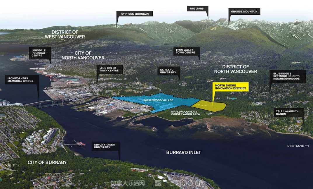 根据规划,Maplewood将继续沿着Dollarton Highway向东发展,该区域有卡皮拉诺大学的“创意园区”,而Berkley Road这条断头路未来也将打通,直达Dollarton Highway。开发商Darwin和Tsleil-Waututh原住民部落将共同在此开发占地面积达到45公顷的创意园区,并配有超过1,000套的住宅,商店和其他设施,让在此工作的员工可以就近解决居住问题。该地区将建18栋2-8层的建筑,整体规模和温哥华奥运村差不多,其中30%是住宅,42%为创意园区办公区,5.7%为娱乐设施。