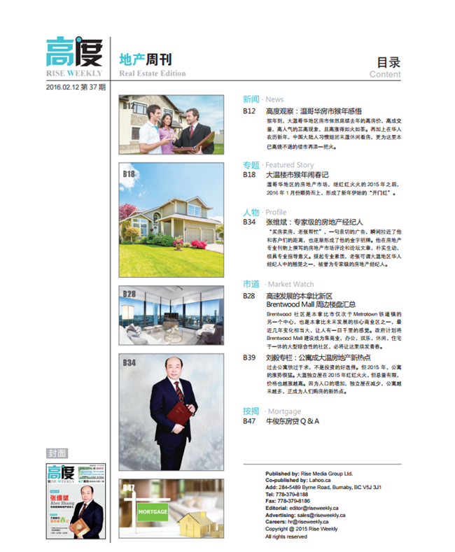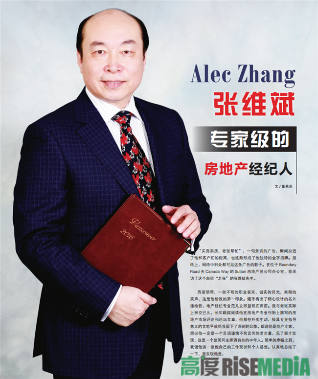 “买房卖房,老张帮忙”,一句亲切的广告,瞬间拉近了他和客户们的距离,也逐渐形成了他独特的金字招牌。报纸上,网络中到处都可见这条广告的影子。在位于Boundary Road夹Canada Way的Sutton房地产总公司办公室,我采访了这个自称“老张”的张维斌先生。