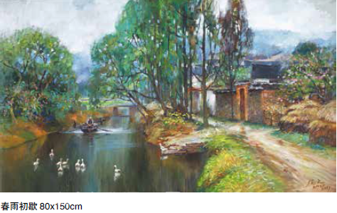 我在美术报工作15年,接触了国内外许多优秀艺术家和阅读了国外美术馆内大量优秀作品及论文,尤其是与吴冠中先生的几次交流与长谈,使我明白了自己应走的艺术道路,我的油画风格和语言也逐步明确起来。我以具象写实的形式,以江南风情与人物为载体,结合童年时期独有的农村生活经历,通过作品表达自己情感。江南风光绮丽迷人,江南物产丰富养人,江南女子优雅朴实,江南文化源远流长。江南,是中国不可多得的宝地,诚可谓人杰地灵,物华天宝。生在江南,长在江南,享受江南风光,感受江南文化,是我人生一大幸事。我有绘画能力表达江南山水和风情,更是我一大幸事。