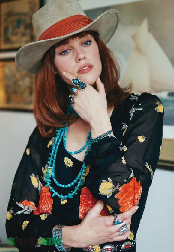 “喜欢它的色彩。”说话时站在我面前的Natasha身穿一件波西米亚风格的绣花上衣,颈项间戴着一大串绿松石项链,外套是一件黑亮的皮夹克,这貌似随意的搭配其实十足用心,与剧院里拉黑的灯光应该是同一道理,只为了烘托出从颈项到胸前的那个鲜艳夺目的“舞台”,显然她很懂得着装之道,在她精心营造的“舞台”之上,那串靛蓝的“主角”在大红大绿的艳丽绣花映衬之下大放异彩。她是对的,应该有不少人也是如此坠入这片蓝海的吧。