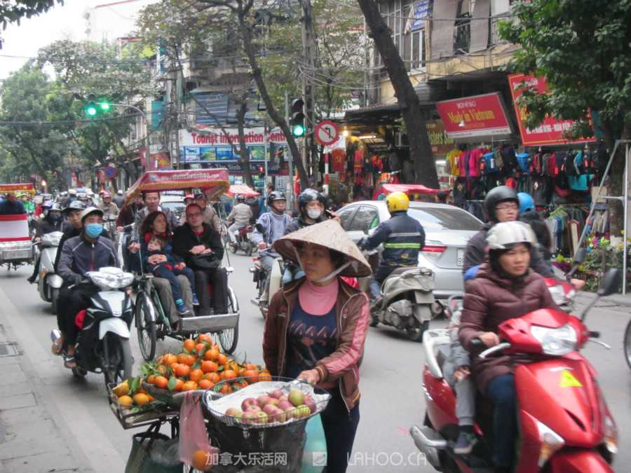 河内的街道,摩托车群如过江之鲫,与三十多年前的中国极为相似。