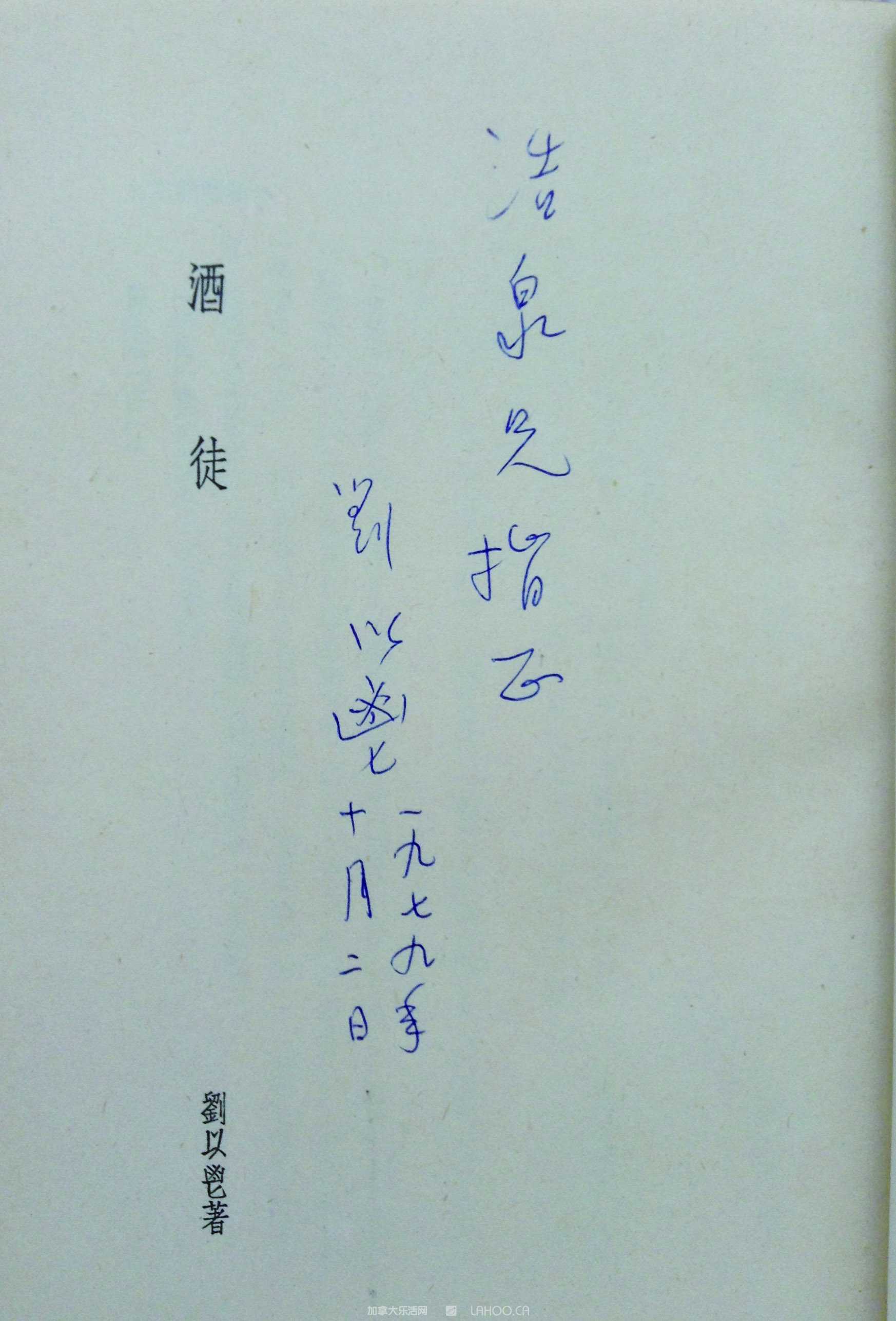 刘以鬯1979年题赠《酒徒》予陈浩泉。
