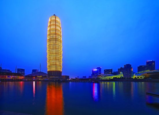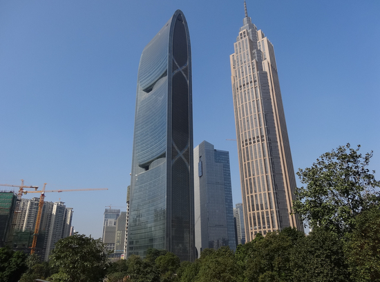 珠江大厦是中国两个上榜的高楼之一,高309米,共71层,由Skidmore, Owings And Merrill LLP设计,世界第一个零生态大楼的设计理念。