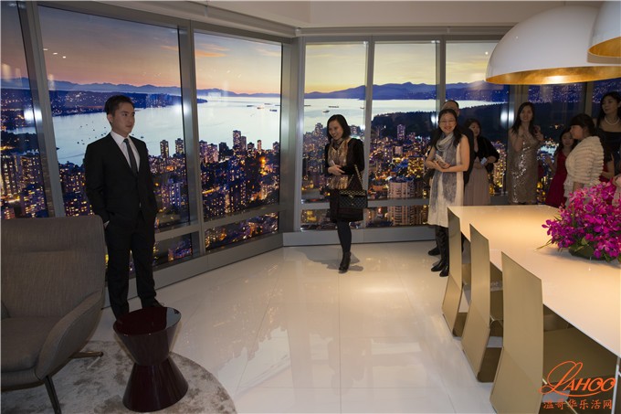 嘉宾们在营销总监Lily的解说陪同下,参观了川普大厦顶层豪宅示范单位。该豪宅可以360度欣赏温哥华市中心以及斯坦利公园的全景,特别订制的智能家电控制系统,顶级优质的意大利厨房设施,温馨舒适的恒温衣帽间、精美细致的大理石洗手间等豪华功能区,也让业主们赞叹不已,流连忘返。最精妙的是,这所有的一切控制设施都可以直接连接到业主的手机,真正做到一键操纵。