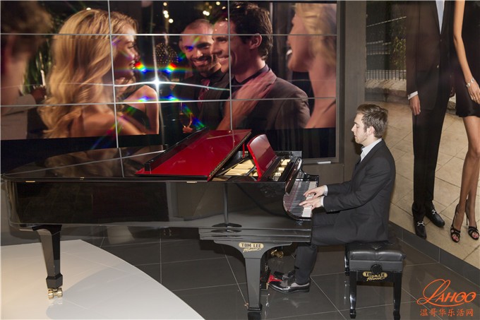 虽然户外阴冷,但在进入由中国传统剪纸贴花、对联以及灯笼装点的营销中心后,温馨的氛围瞬间将嘉宾们包围。空气中弥漫的淡淡蝴蝶兰香气以及现场由通利琴行(TOM LEE)赞助的施坦威钢琴所奏出的优美旋律,营造出一片宾至如归的归宿感。