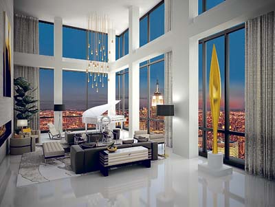 温哥华特朗普大楼的顶层设计图尚未公布,但据说可媲美同样以Trump命名的纽约苏豪(SoHo)酒店叫价5,000万美元的超豪顶楼(图)。网上图片