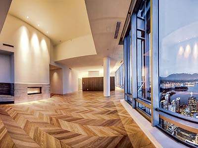 单位内非比寻常的设施,则包括大型嬉水滑梯,以及称为无极池(Infinity Pool)的超级泳池,无不极尽奢华之能事。这个超豪顶层单位总面积达3.3万平方呎,呎价11,727美元。而温哥华虽已进入超豪顶楼俱乐部,但毕竟是后起之秀,以历来成交价最高、达2,500万加元的环太平洋酒店顶楼来说,总面绩6,434平方呎,呎价3,886加元,即约3,500美元,相较之下有一段距离。