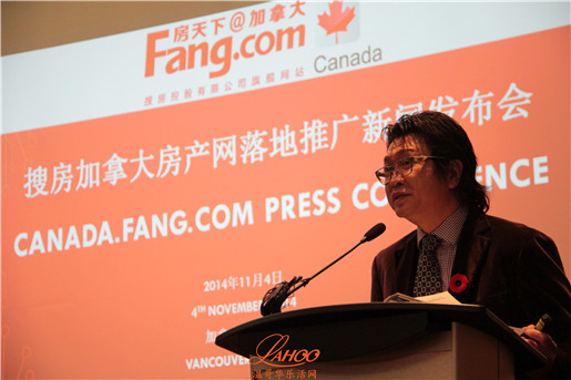 2014年11月4日上午,由太平洋远景投资集团协力举办的搜房加拿大房产网(Canada.fang.com)落地新闻发布会在列治文Radisson酒店隆重举行,本次新闻发布会,吸引了BC省100多名地产经纪、地产开发商及多家媒体到场出席。