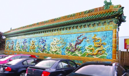 密西沙加中国城的仿制九龙壁。(明报记者摄)