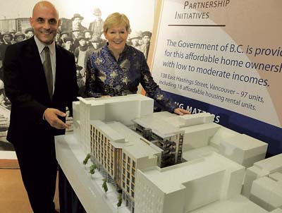 卑诗司法及律政厅长苏安彤(SuzanneAnton),周五去到温市华埠大温哥华中华文化中心博物馆,宣布省府与该项发展计划伙伴,包括发展公司Sequel138DevelopmentCorp.和FJLHousingSociety达成的融资及管理协议。省府会安排2,180万元临时建设融资,同时安排81.4万元长期融资并代表FJLHousingSociety购买18个可负担房屋居住单位。