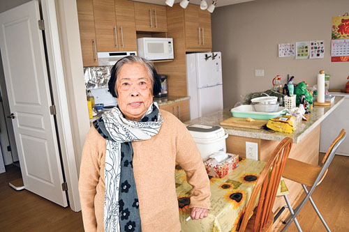 现年78岁华裔女长者崔艳屏,与87岁的丈夫是同济大楼住客,两人身体健康,可独立生活,原居列治文公众市场附近的私人柏文,月租约一千元。主要靠老人金生活的崔艳屏说,前年9月当女儿得悉该柏文招租,立刻替他们申请,等候6个月收到批准入住消息,她形容当时心情,简直如中彩票般兴奋。