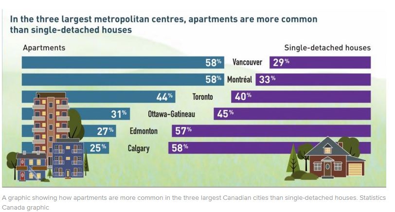 (公寓已经取代独立屋成为加拿大大型城市中最多的住宅类型)