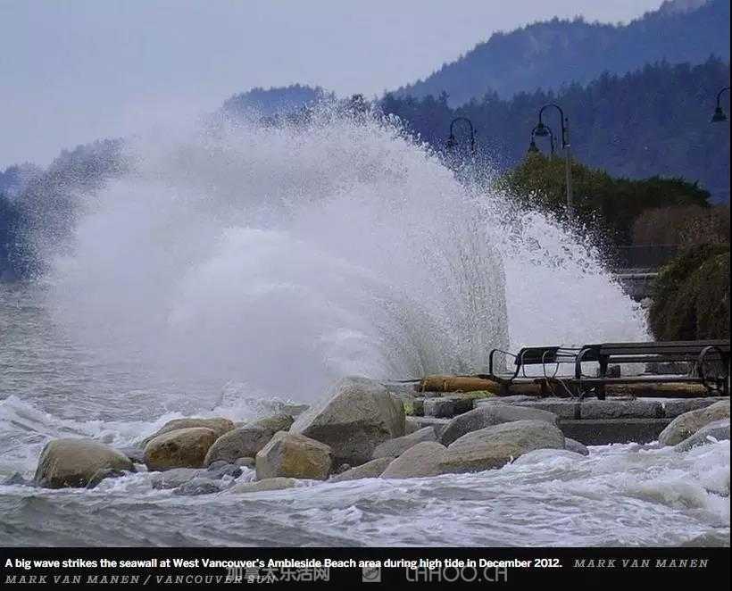 [加拿大乐活网lahoo.ca 黄海撰写] 加拿大移民公司广告里经常唱:“温哥华是人类最适宜居住的城市”,就是鼓动大家在温哥华上天、下海、任意地放飞自我,可是国王潮汐和圣海伦火山不同意! 温哥华最近受到了“国王潮汐”一万点伤害,从南到北多条大路波浪宽,风吹海浪淹两岸,这个国王潮汐(King Tide)每年光顾温哥华两次,最高时巨浪达到5米,大家来感受下整个温哥华都是海景房的和谐画面.