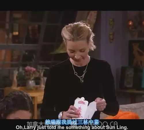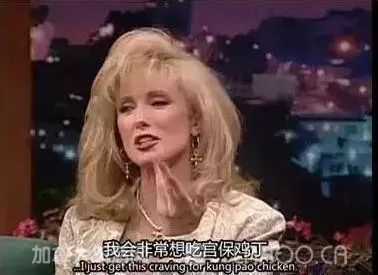 《老友记》(Friends)第一季第11集中,Chandler性感的母亲在电视上接受采访时说“我喜欢吃宫保鸡丁”。