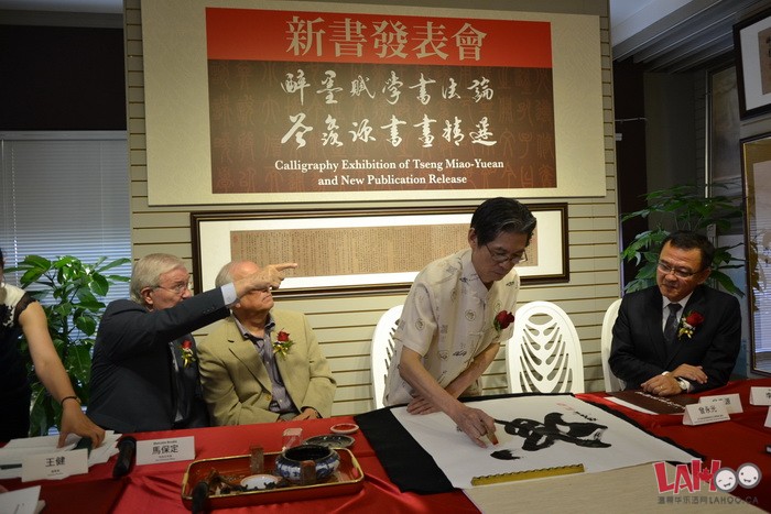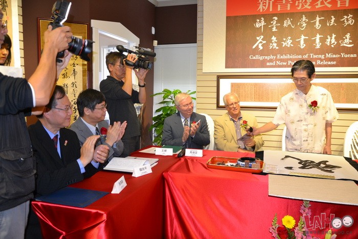 [温哥华乐活网 JOY报道]2013年8月24日(星期六)上午11:00,《醉墨赋学书法论》新书出发布会暨“曾淼源书画作品展”开幕茶会顺利举行。此次书画展中有八十余幅作品展出,其中还有部分水墨画一起展出。社会各界人士纷纷到场祝贺并剪彩。