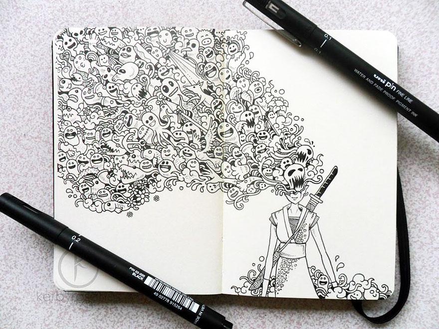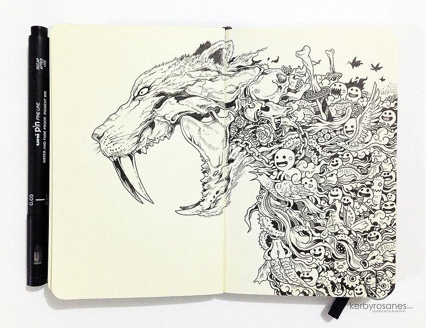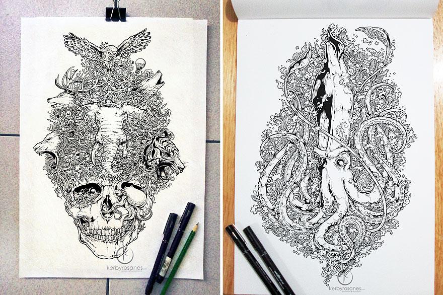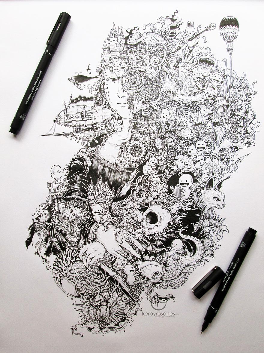 【温哥华乐活网 乐观编译】你还记得曾经画在高中作业本上的涂鸦吗?也许你现在还在那么做。但有菲律宾血统的插画家Kerby Rosanes创作的涂鸦恐怕是高了你我不知道多少个等级。