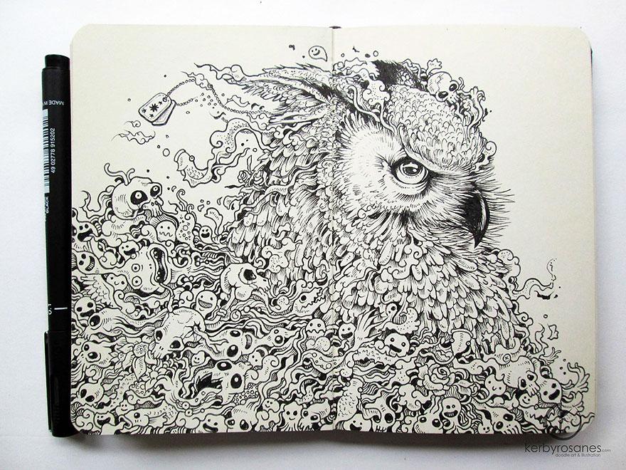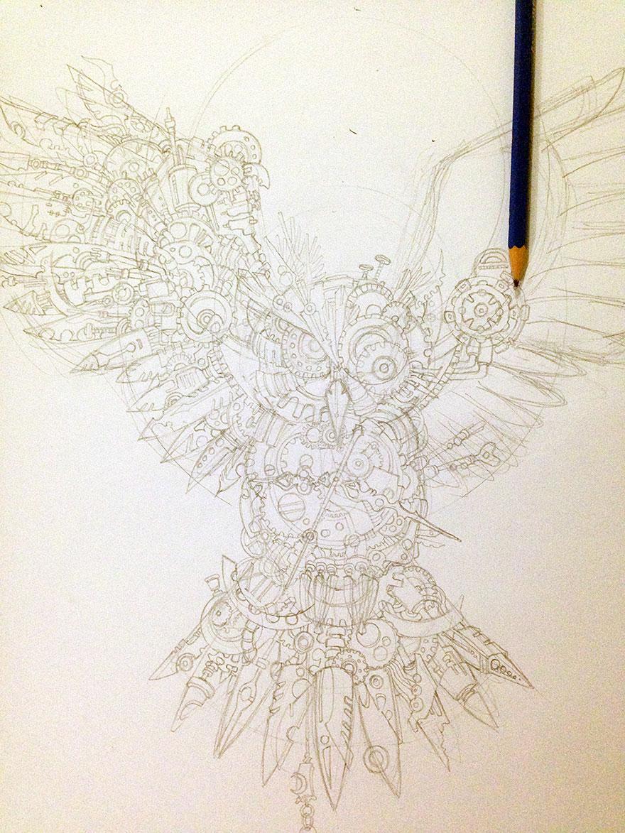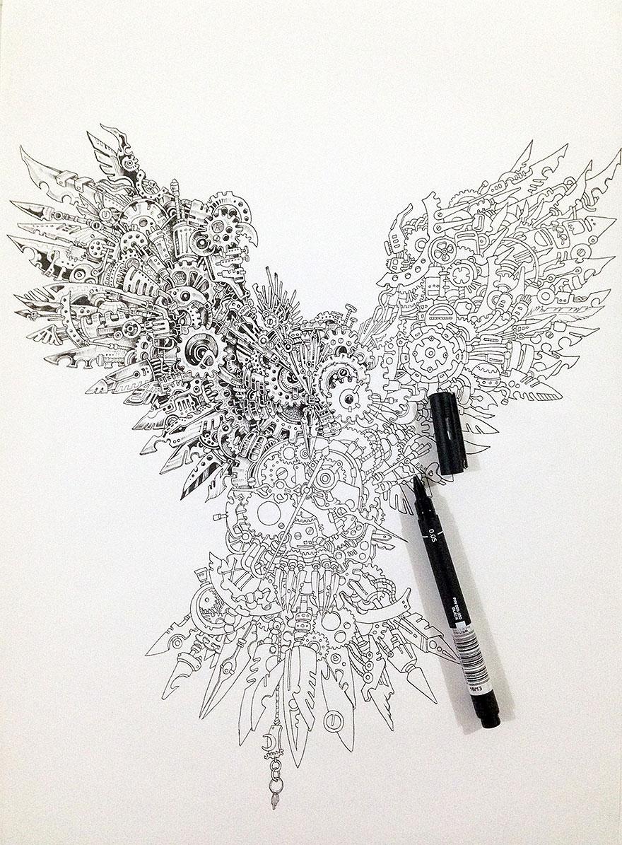 原文地址:http://www.boredpanda.com/pen-drawing-time-guardian-steampunk-owl-kerby-rosanes/
