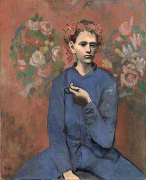 《拿烟斗的男孩》表现了毕加索向多元化不断萎缩的社会的致敬。它描绘了瘟疫袭击下的复杂社会的方方面面闪光点。毕加索运用灰橙色和粉色的混合基调来创作这幅画。这幅画的尺寸是100 × 81.3厘米,描绘了一位左手拿着一个烟斗的巴黎男孩。2004年,这幅画以1.04亿美元的天价在苏富比拍卖行成交。