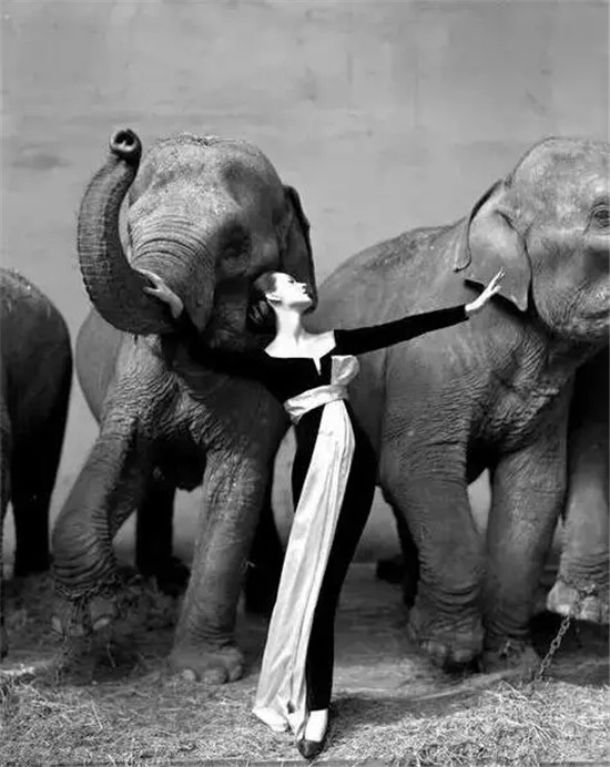 Richard Avedon 《Dovima with elephants》(1955),2010年11月在巴黎佳士得拍卖会拍得115.2万美元