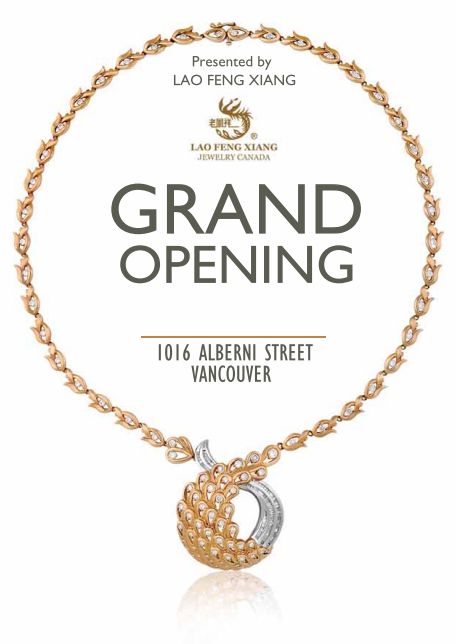 温哥华最新入驻,中国最大的奢侈珠宝巨头品牌老凤祥将在温哥华开店,此前,该品牌已在纽约第五大道上成功设立北美地区首家专卖店。