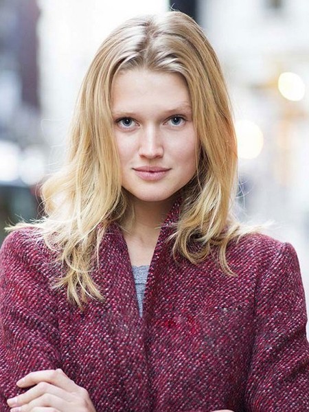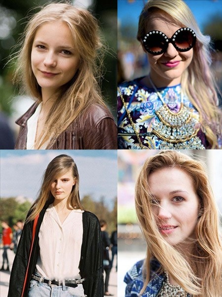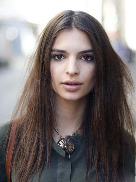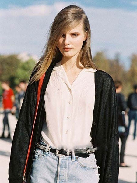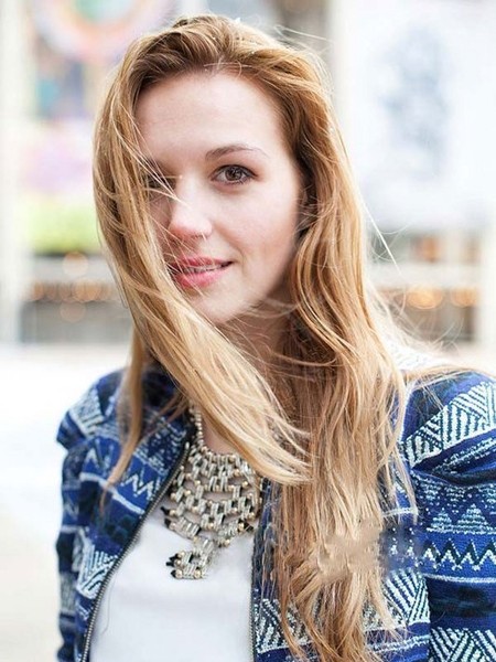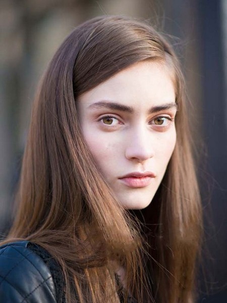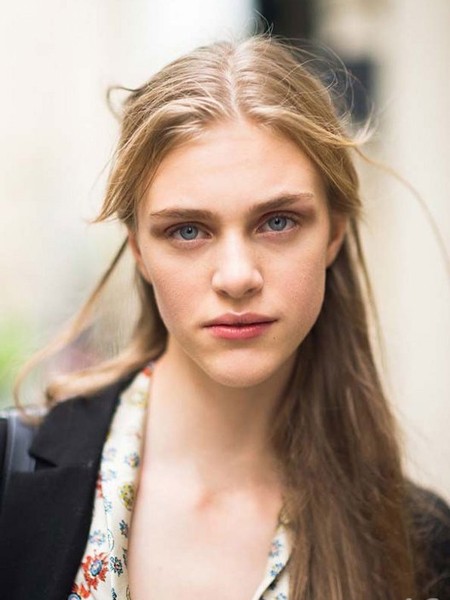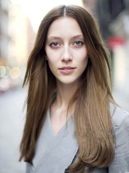 独具魅力的亚麻色垂直长发型,修显女性脸部,中分的发型更能修饰前额,打造露额街头美人。