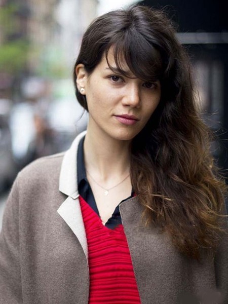 长刘海,以自然的随性侧分,柔美的随散发一起披散着,街头的休闲味十足的。